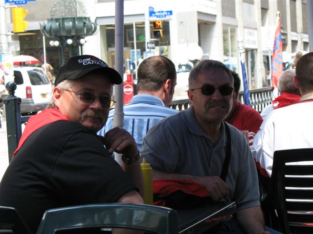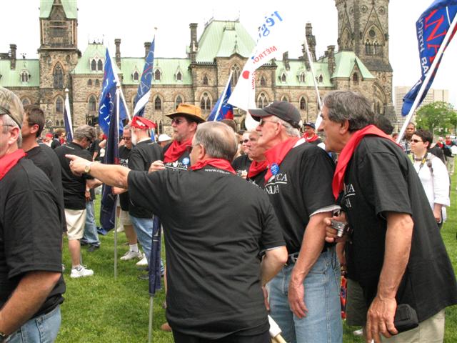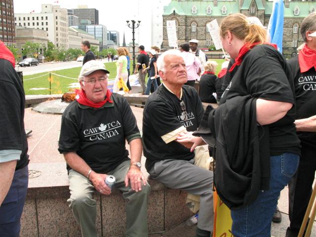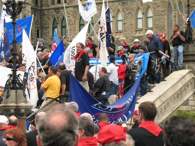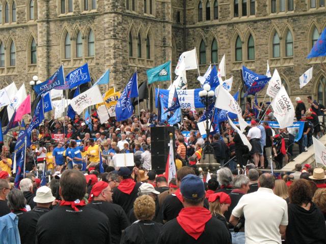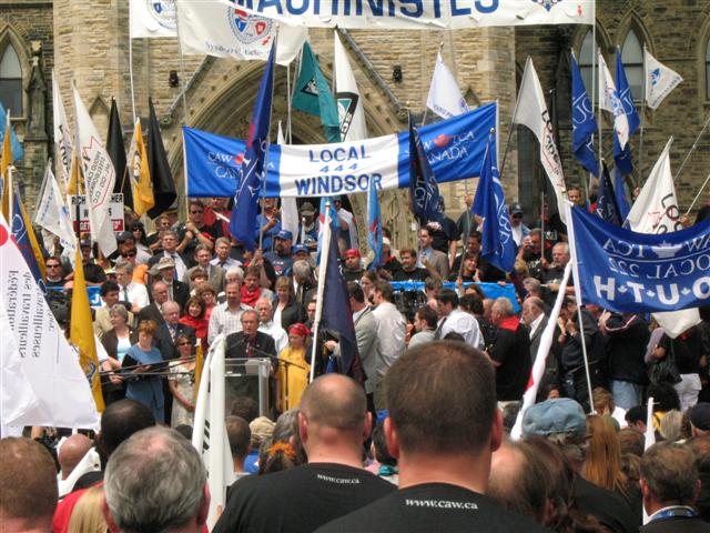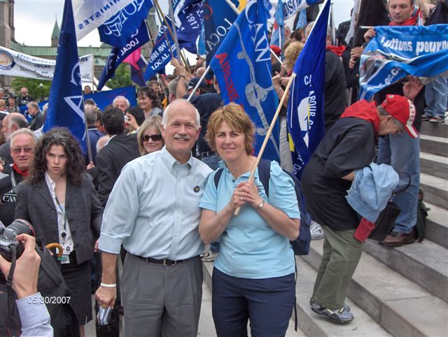 | Lots of flags & banners. | Jack Layton. George Markic |