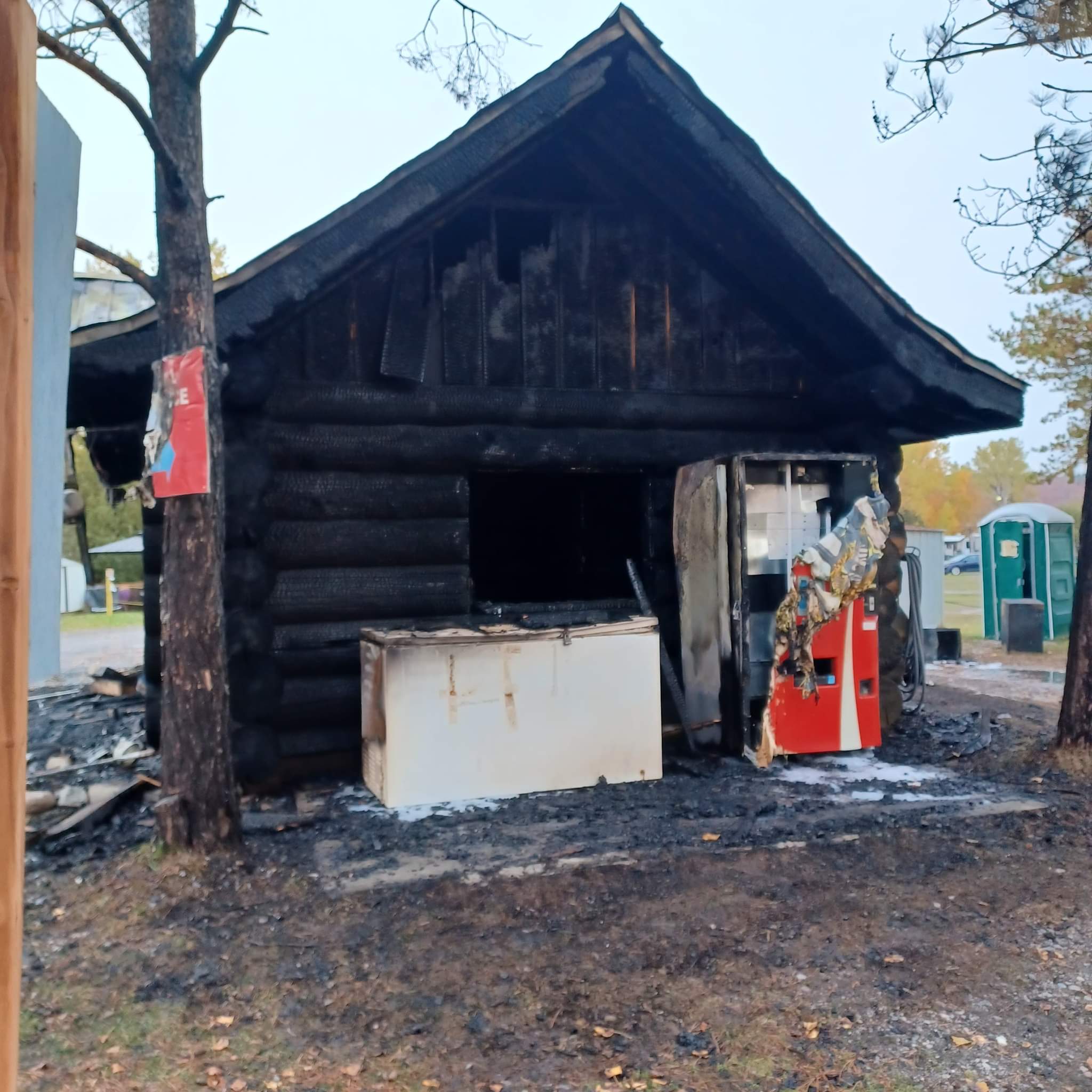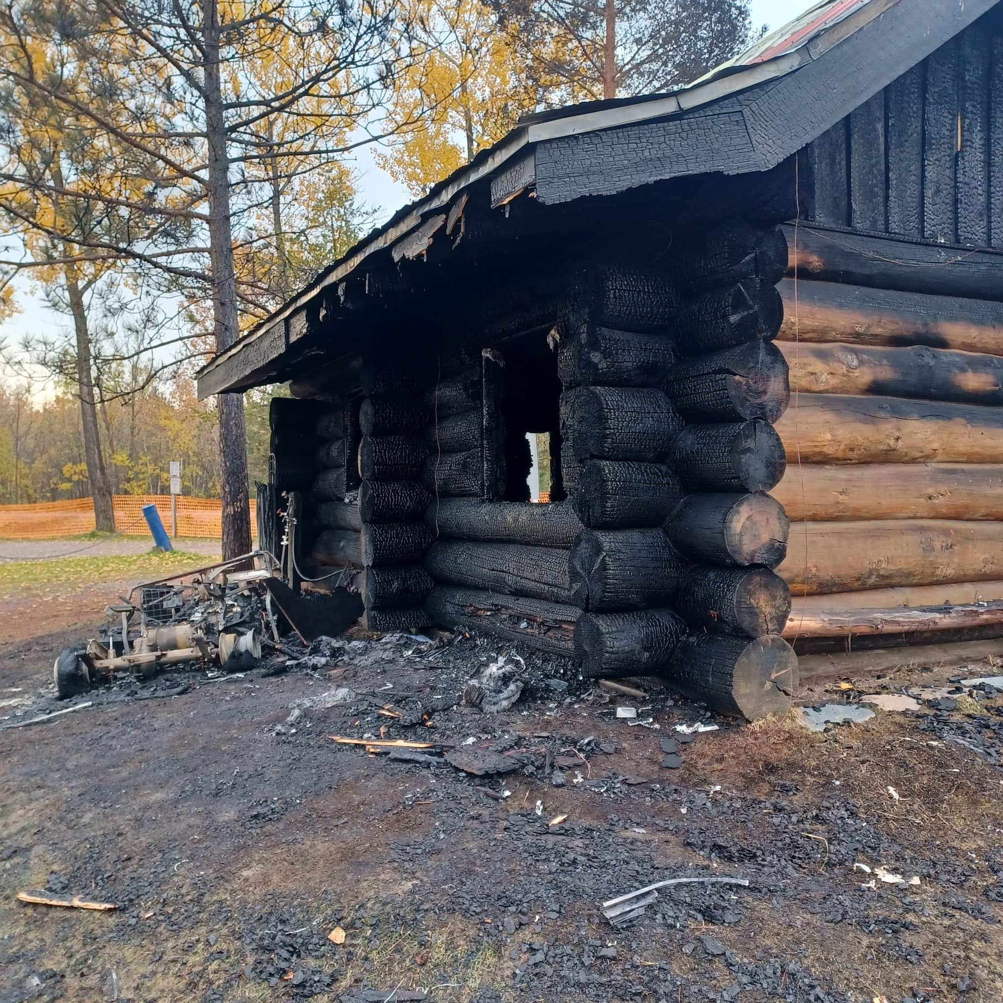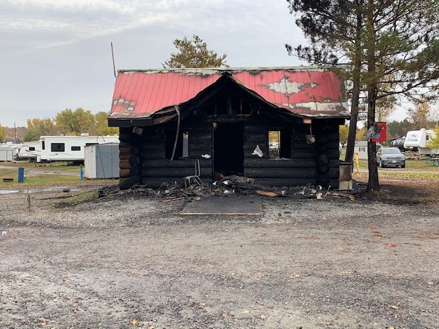 The log cabin at the campground was burnt down Thursday morning at around 2:30. The culprit was arrested a short time later by the O.P.P.